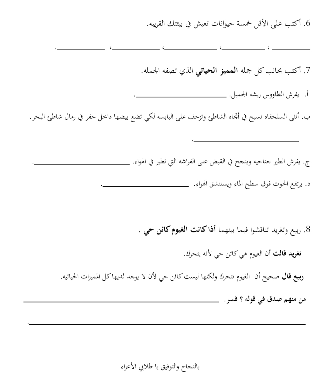 مهمة في المميزات الحياتية